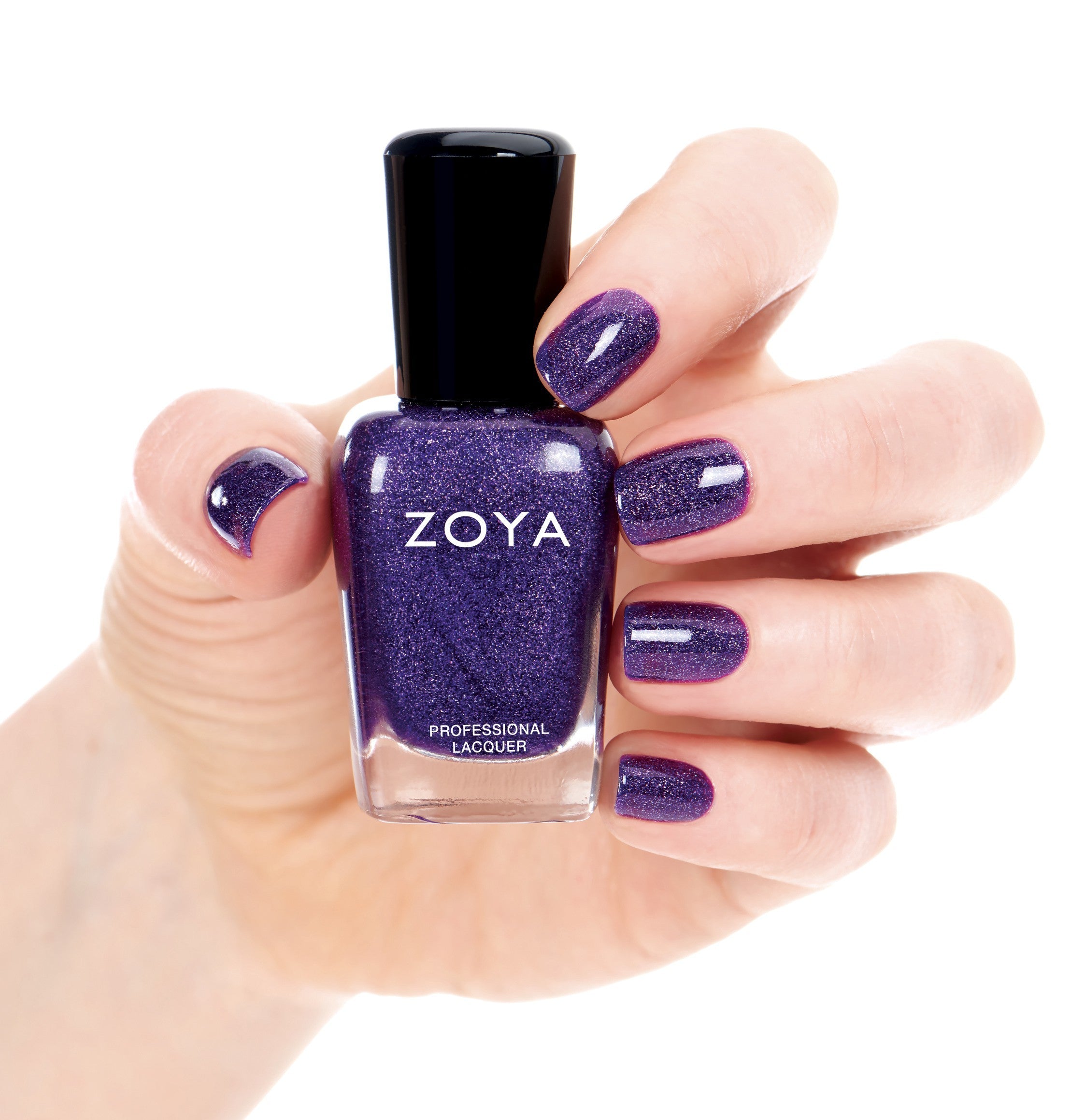 Un viola reale intenso con spruzzi di holo. Applicazione uniforme con un'elegante copertura a 2 mani.
